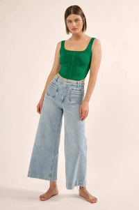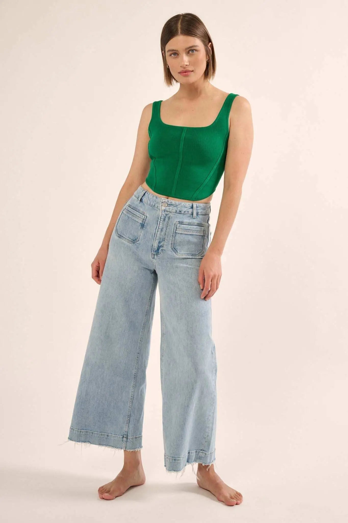 Shaper Fit Square Neck Rib-Knit Corset Tank Top