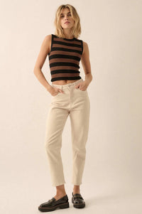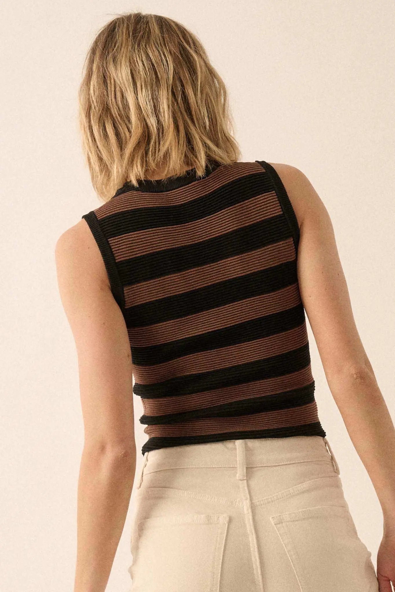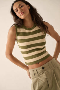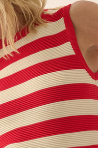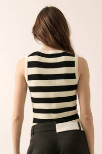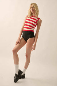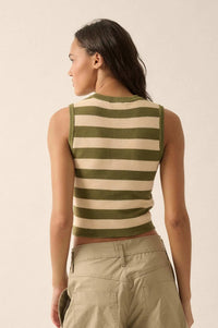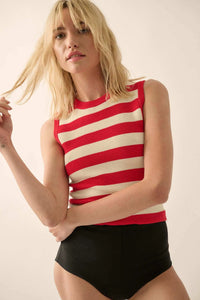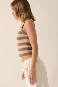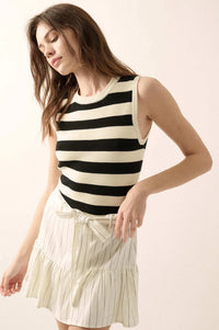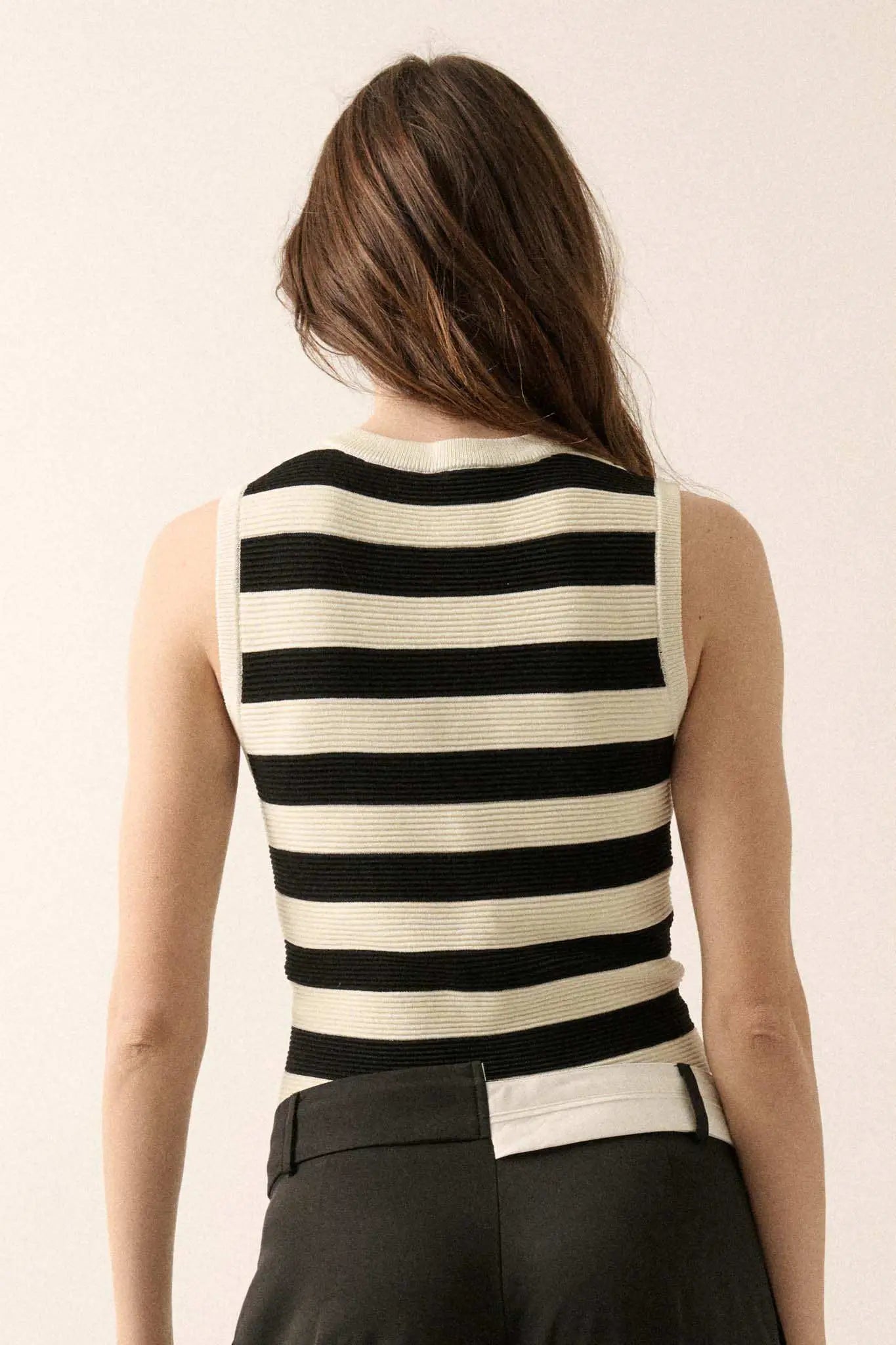 Shaper Fit Striped Rib-Knit Crewneck Tank Top