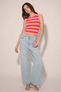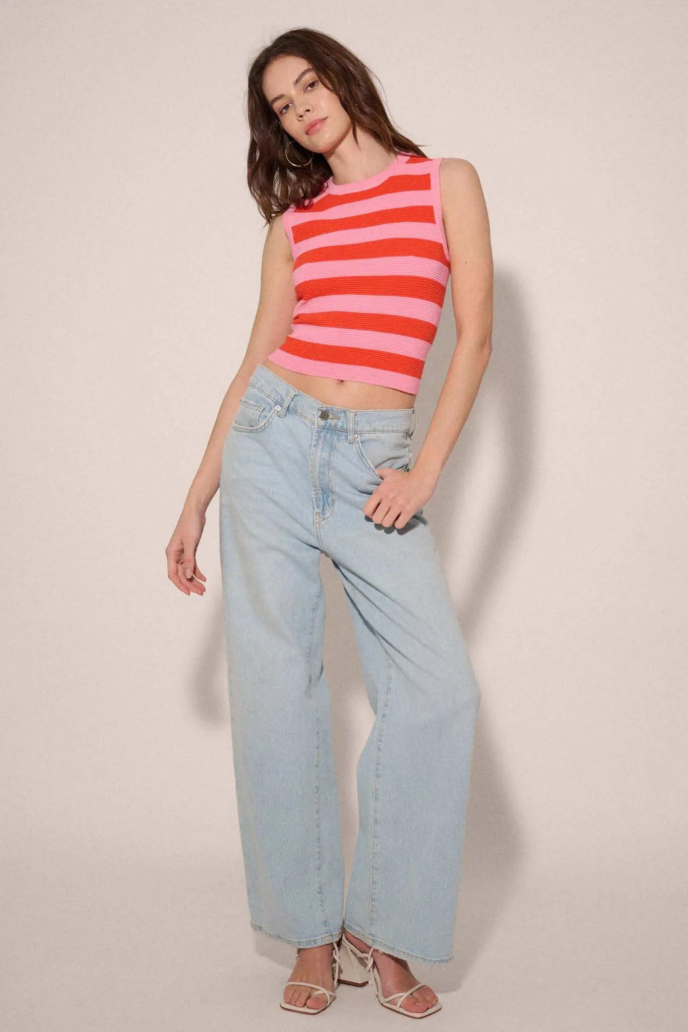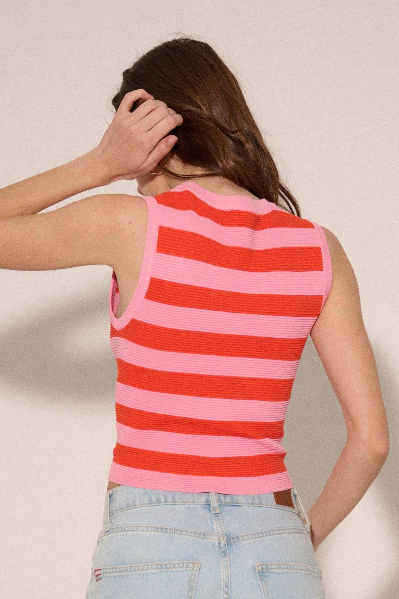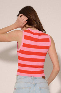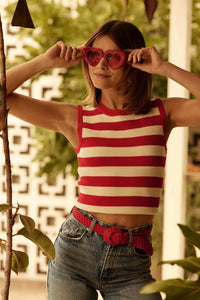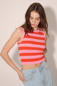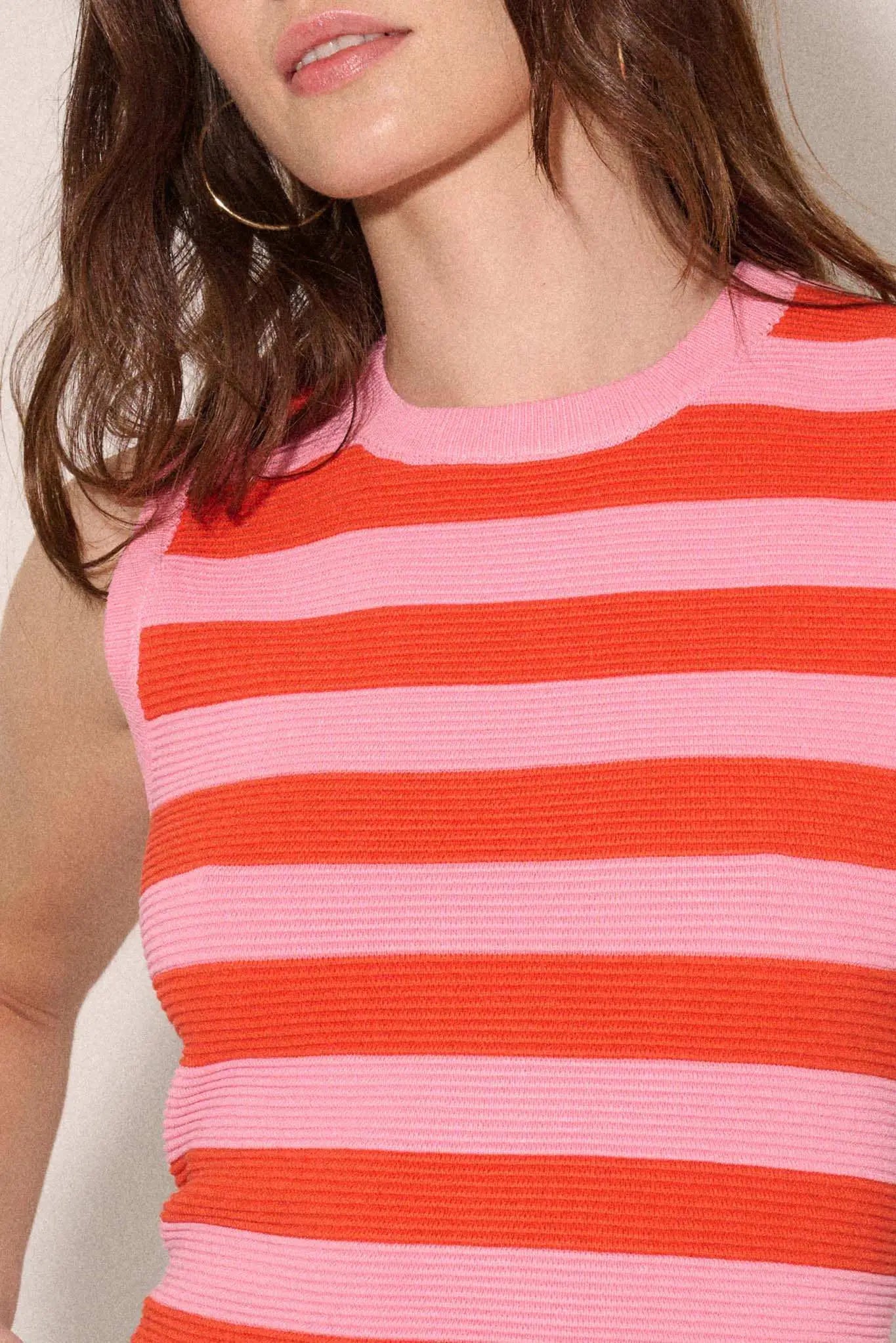 Shaper Fit Striped Rib-Knit Crewneck Tank Top