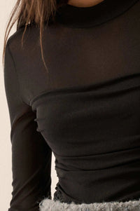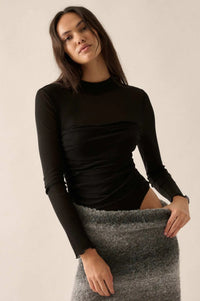 Sheer and There Layered Mesh Mock-Neck Bodysuit - ShopPromesa