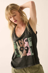 Since 1991 Vintage-Wash Raw-Edge Graphic Tank Top