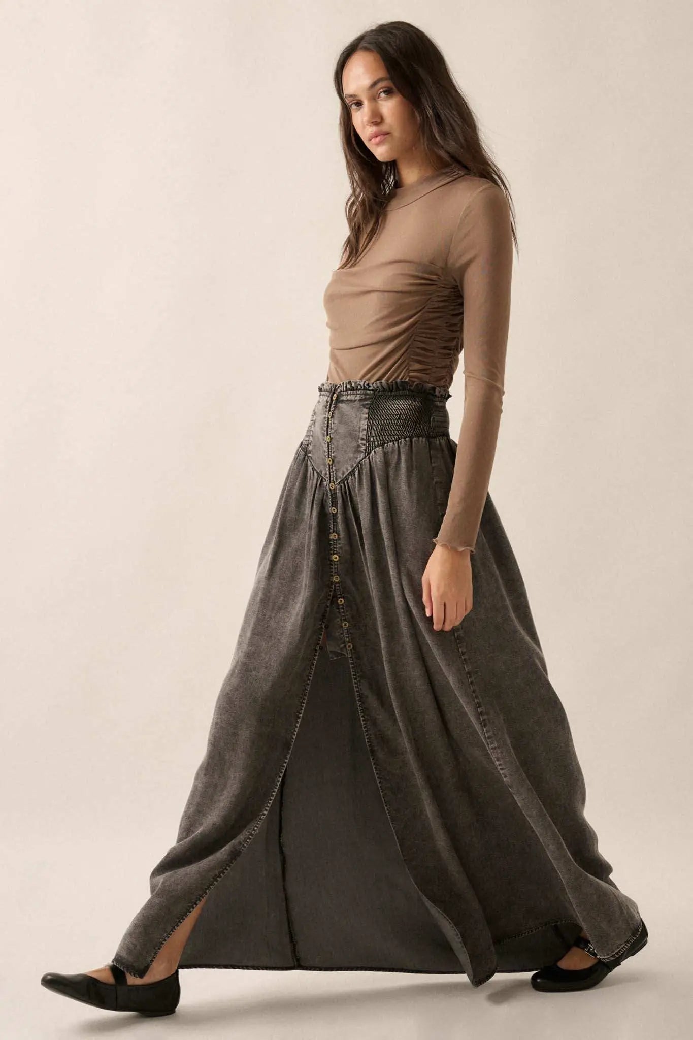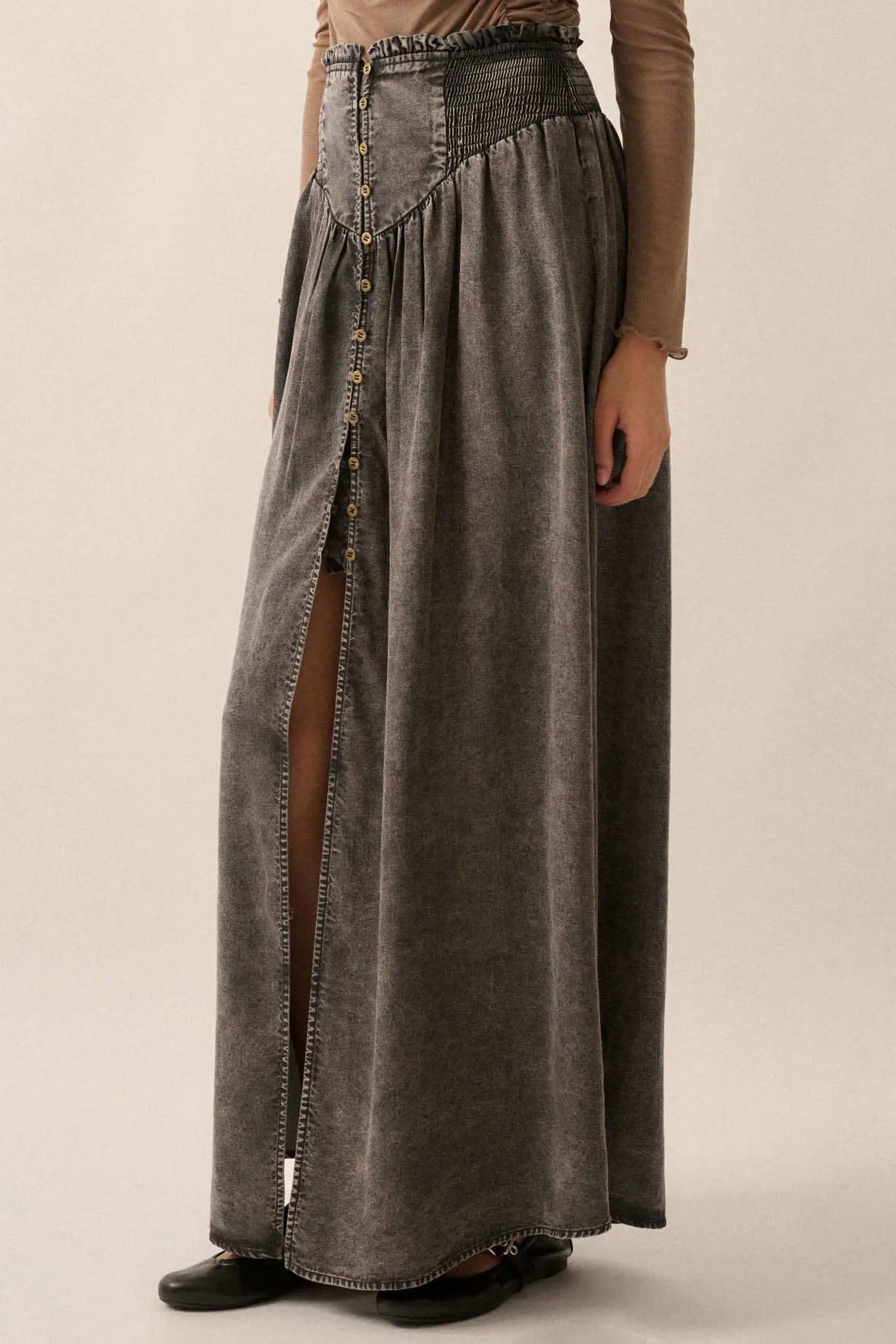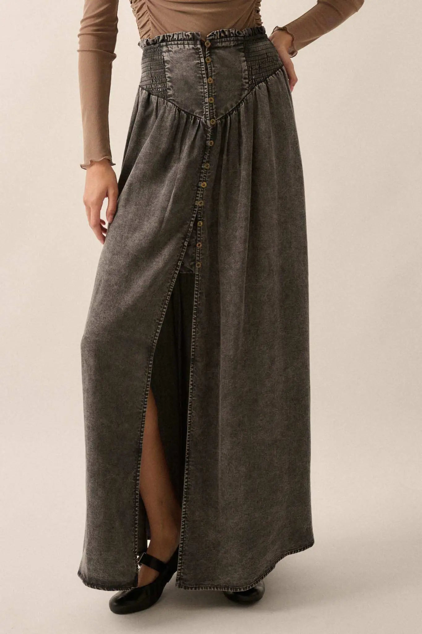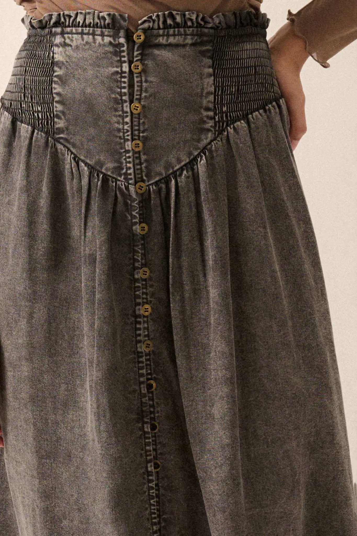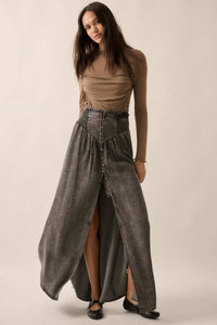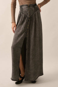 Softest Storm Acid-Wash Denim Buttoned Maxi Skirt