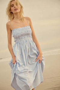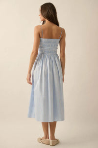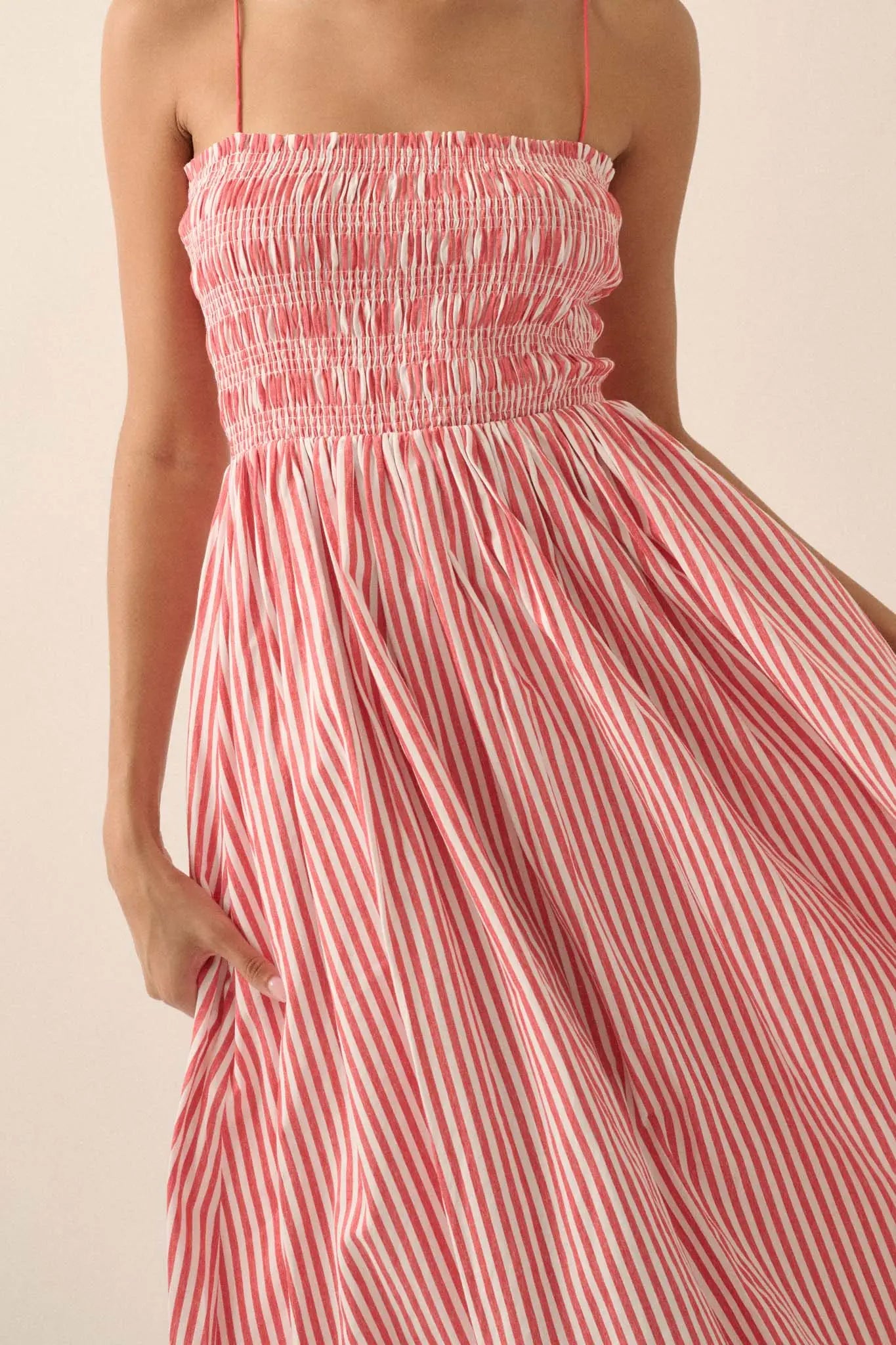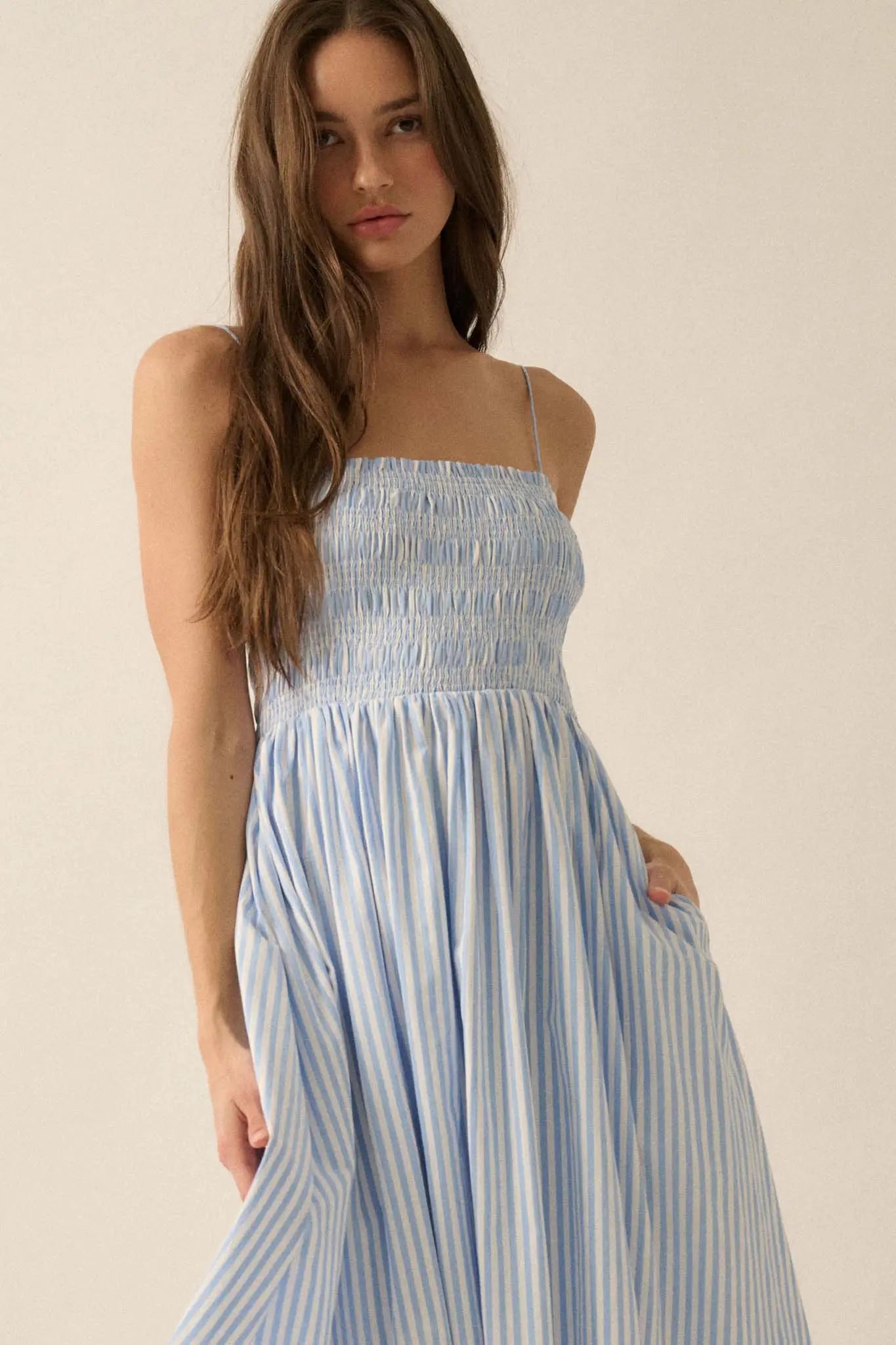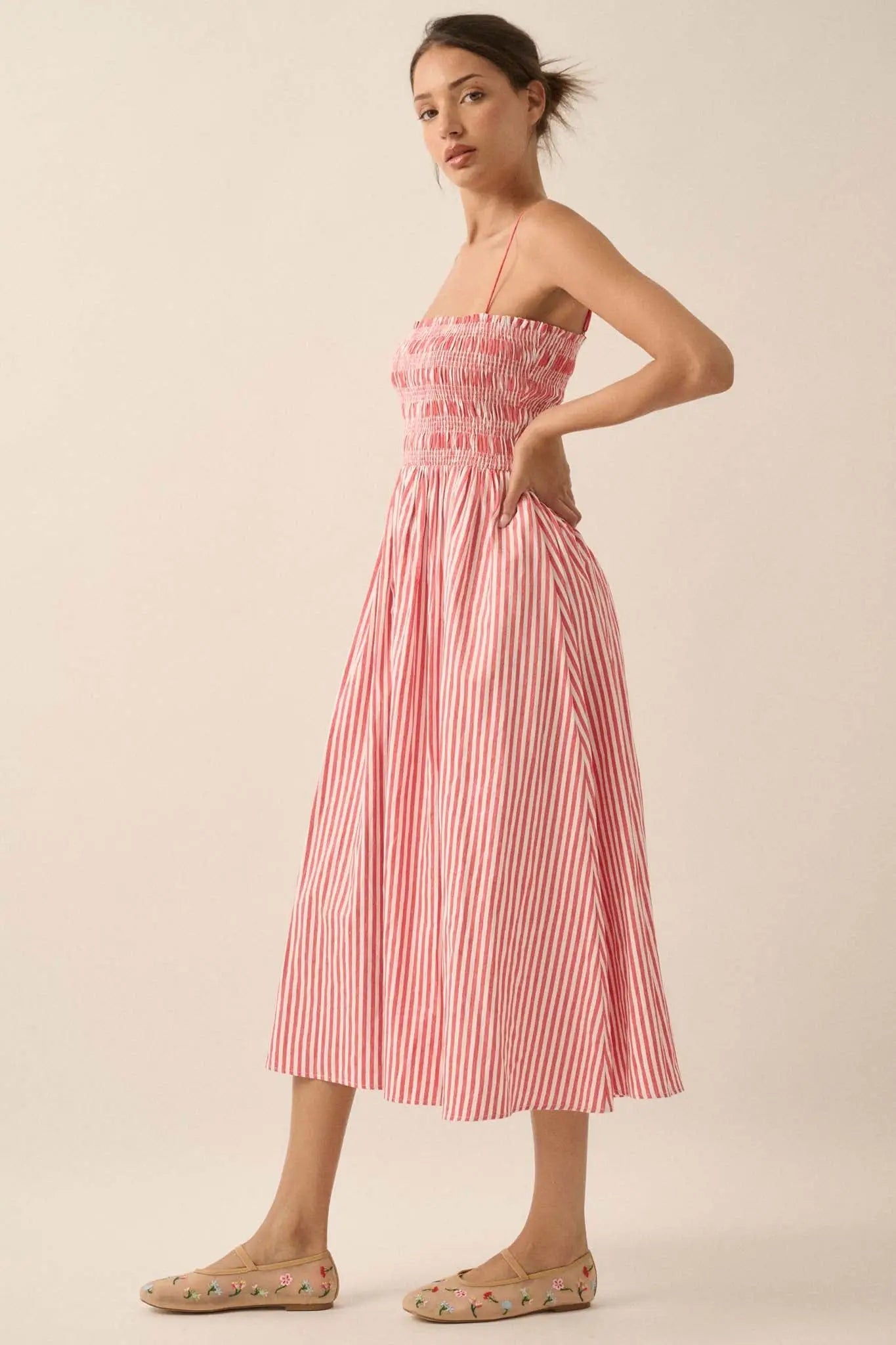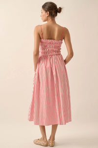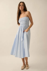 Stripe It Up Striped Smocked Pocket Midi Dress