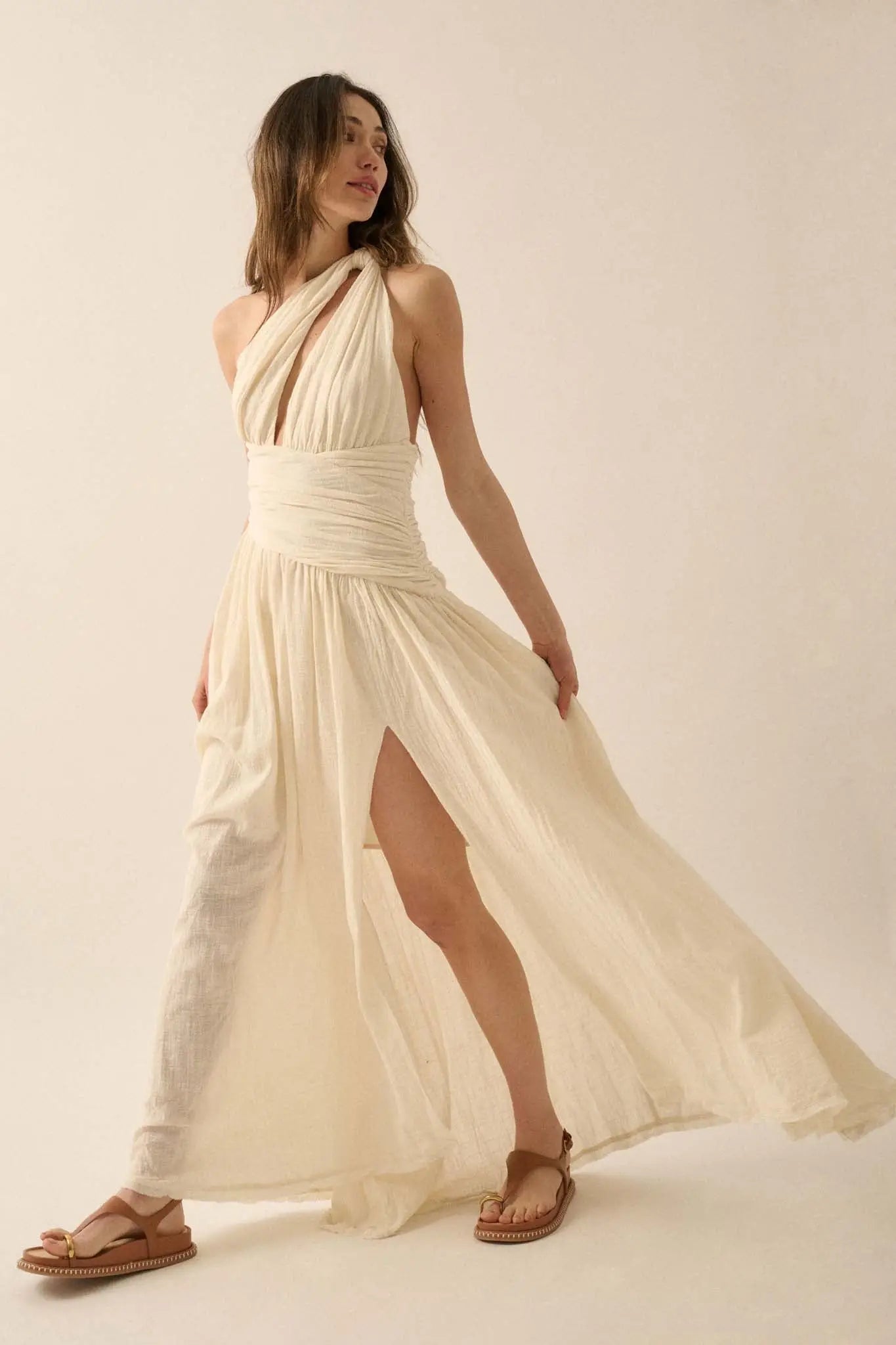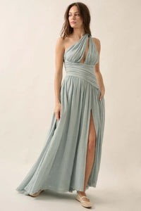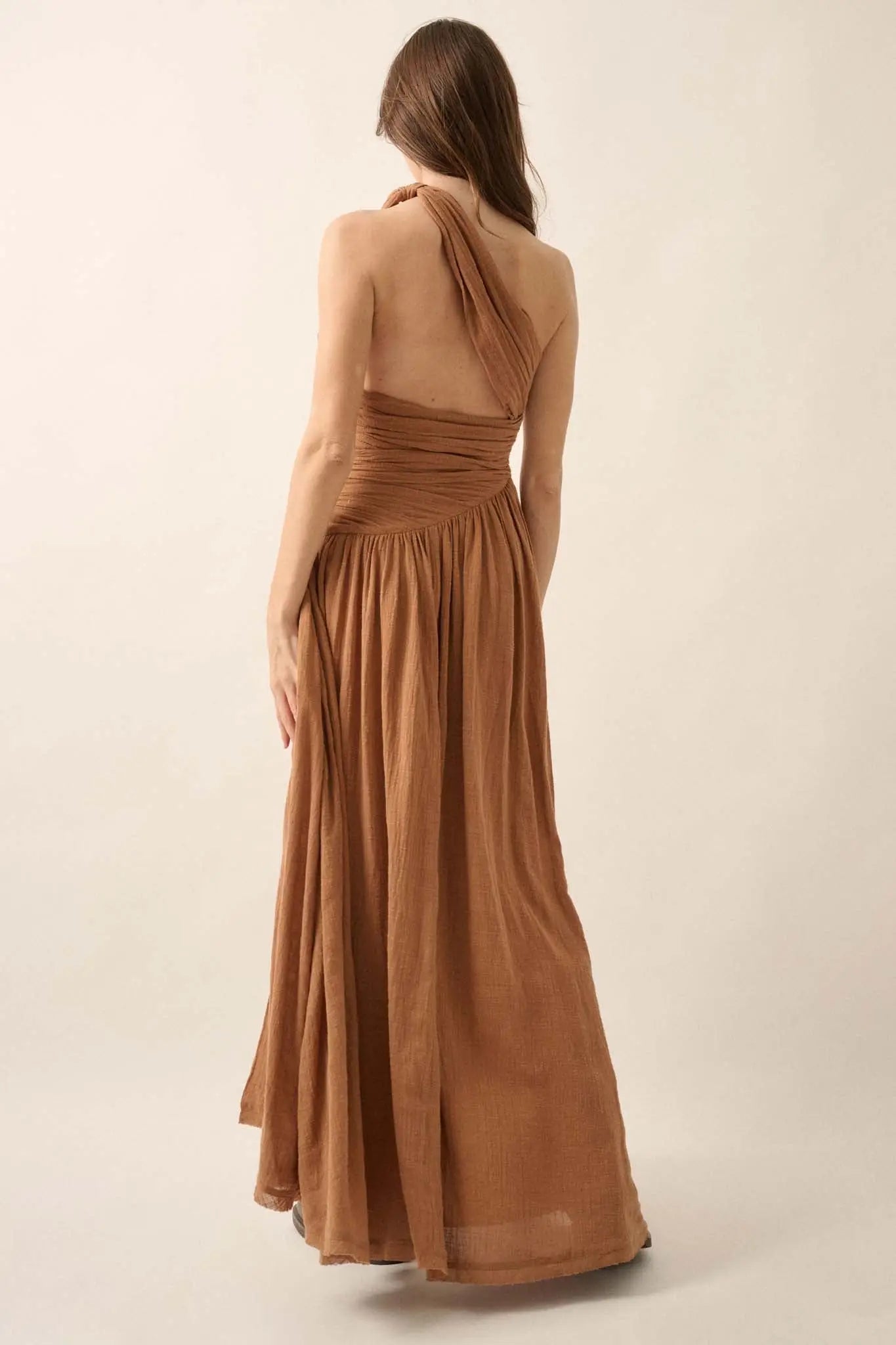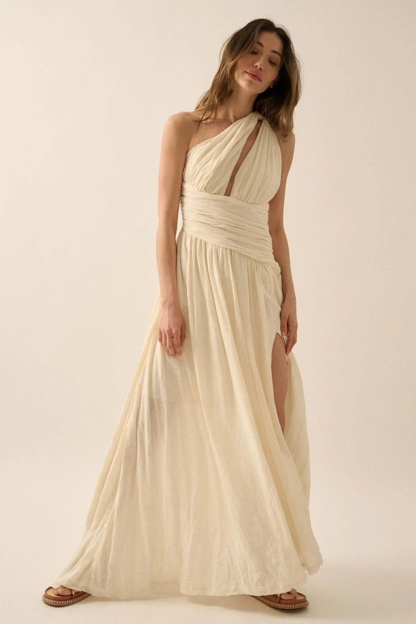 Swept Away Textured Cotton One-Shoulder Maxi Dress - ShopPromesa