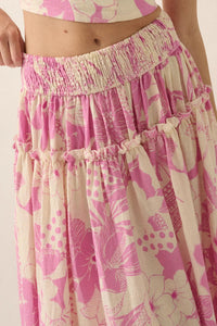 Taste the Tropics Floral Tiered Ruffle Maxi Skirt