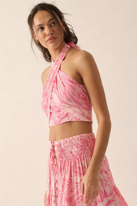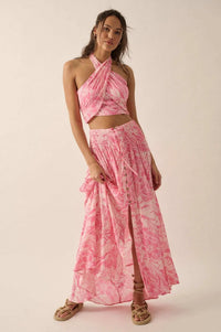 Tropical Tides Floral Cross-Front Halter Top - ShopPromesa