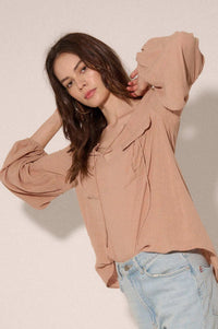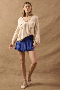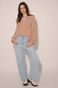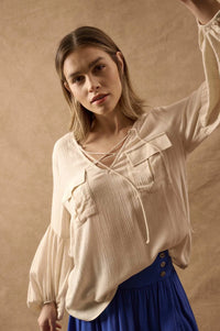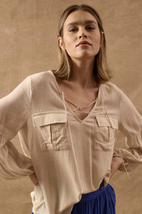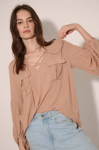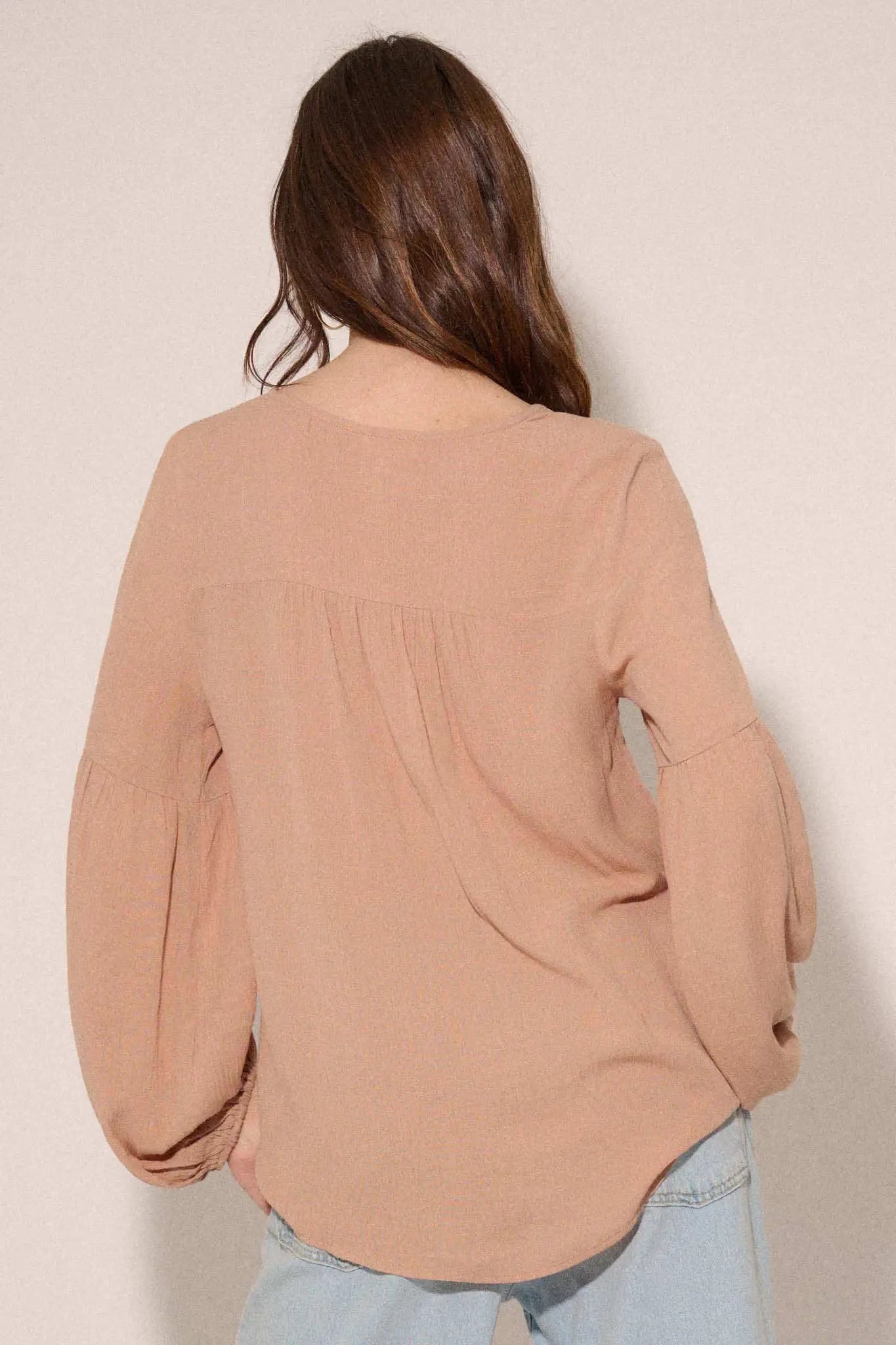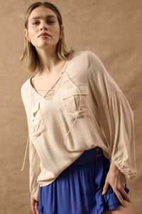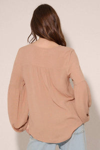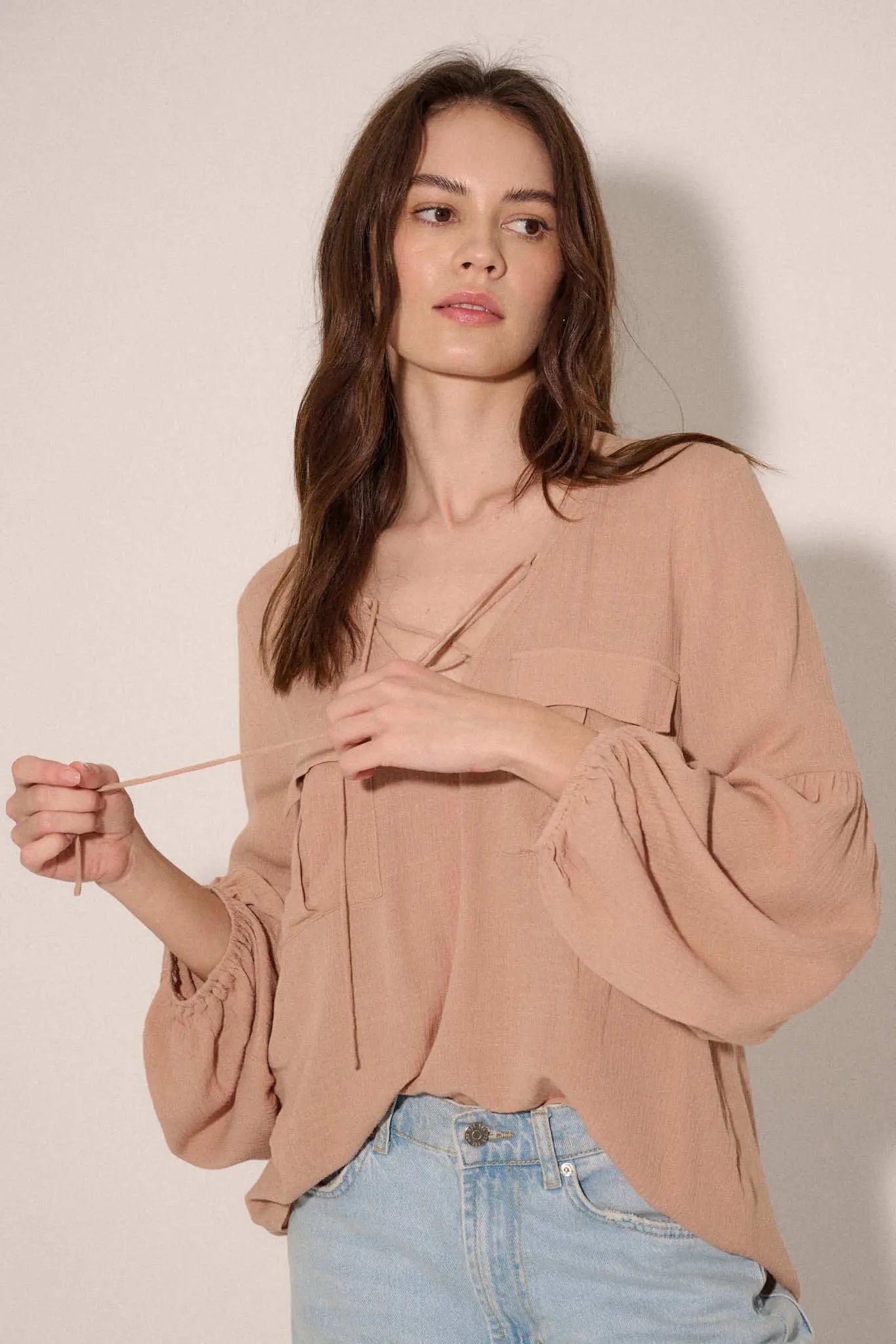 True Nature Balloon-Sleeve Pocket Peasant Top
