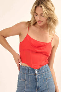 Truly Tempting Satin Cowl Neck Corset Cami Top - ShopPromesa
