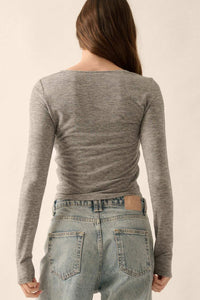 Under Wraps Asymmetrical Layered Baby Rib Top