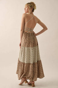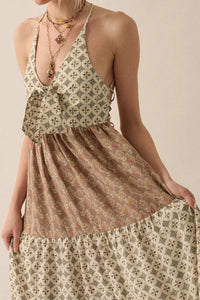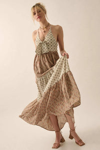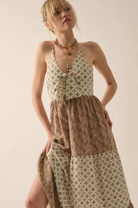 Unique Soul Block-Print Tiered Halter Maxi Dress