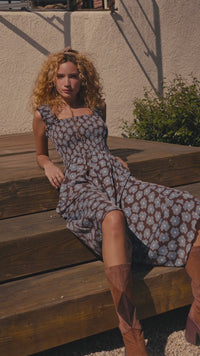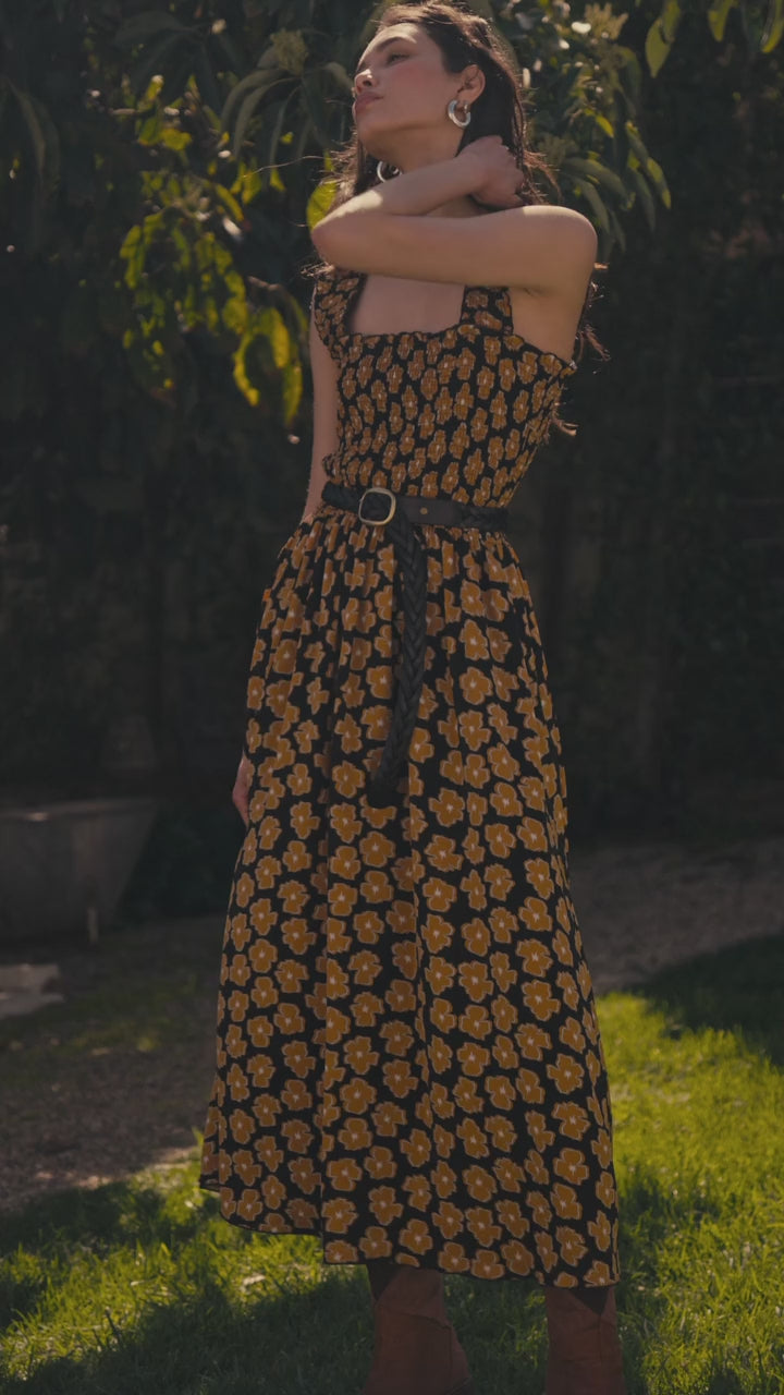 - Wide, smocked shoulder straps with lettuce-edge ruffle.