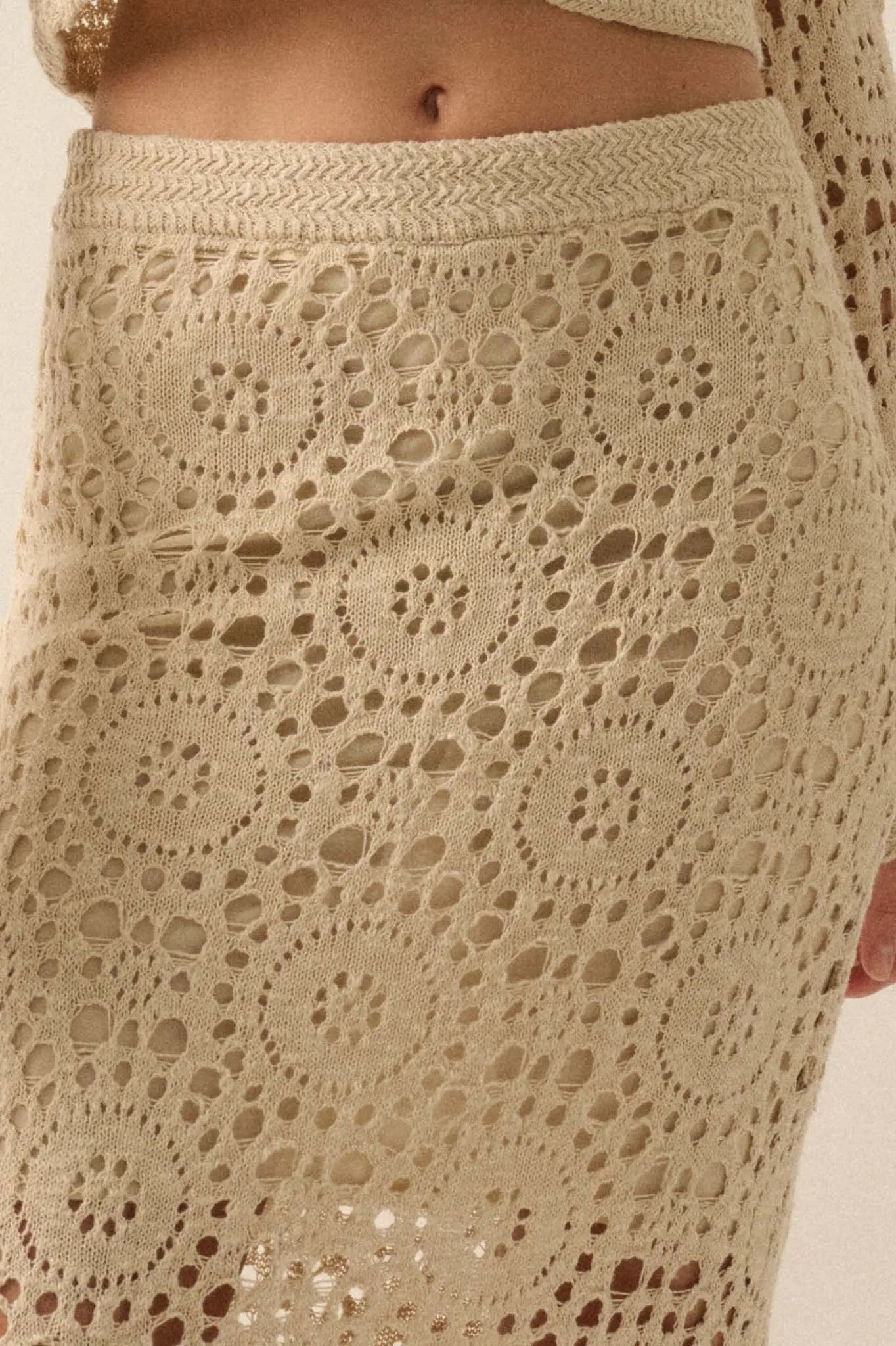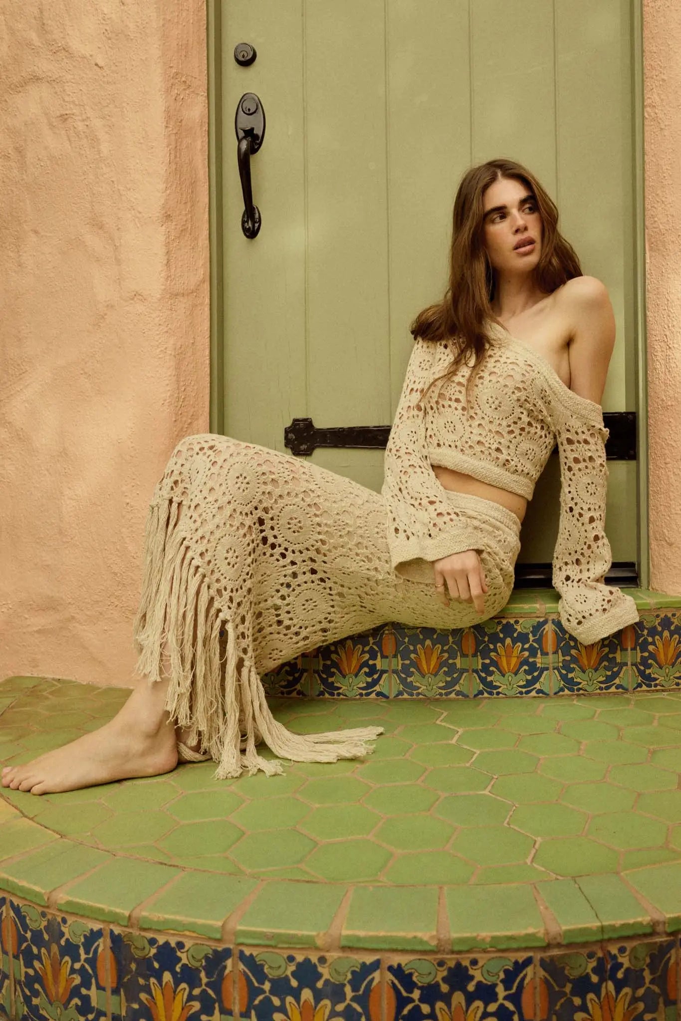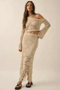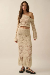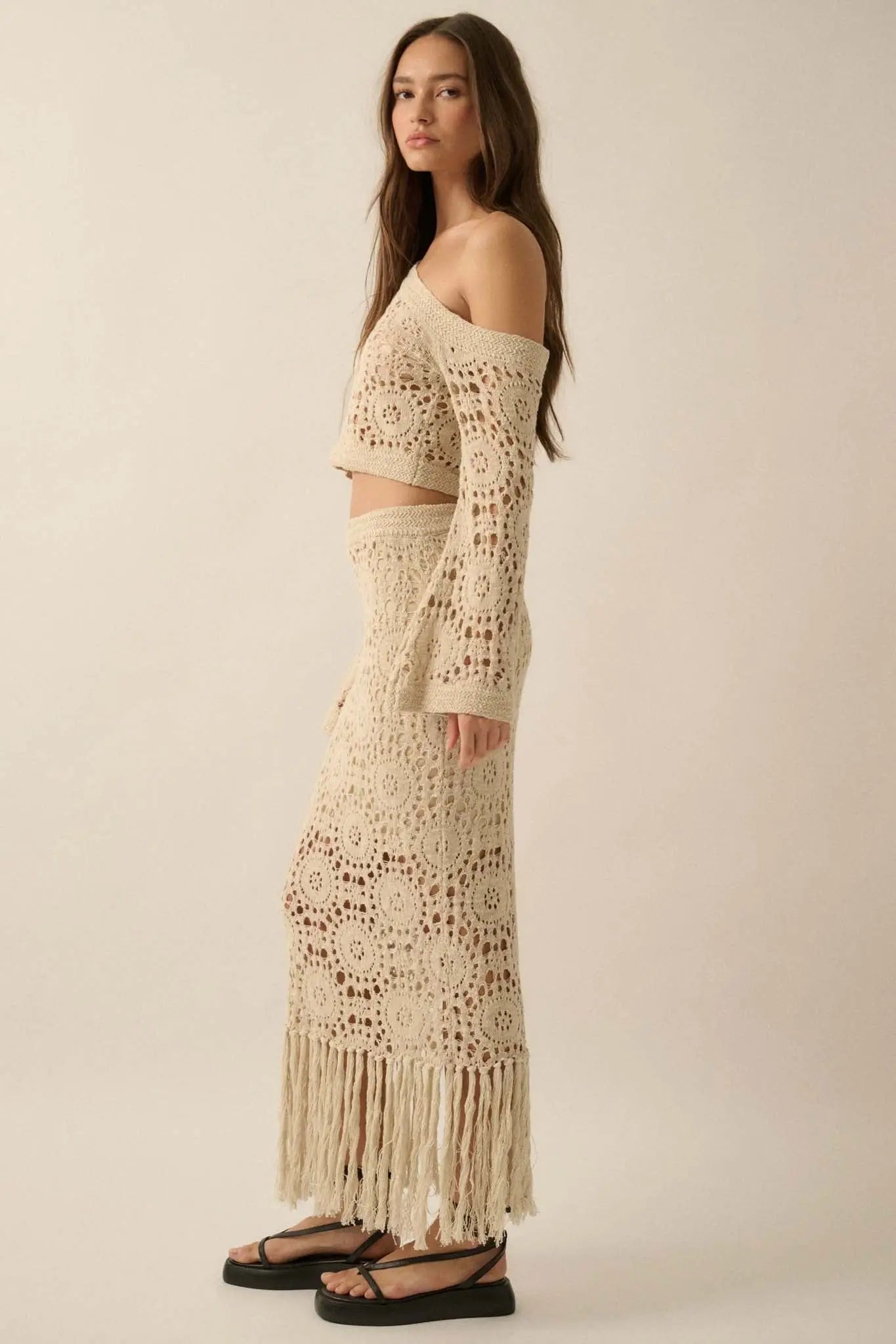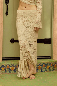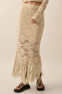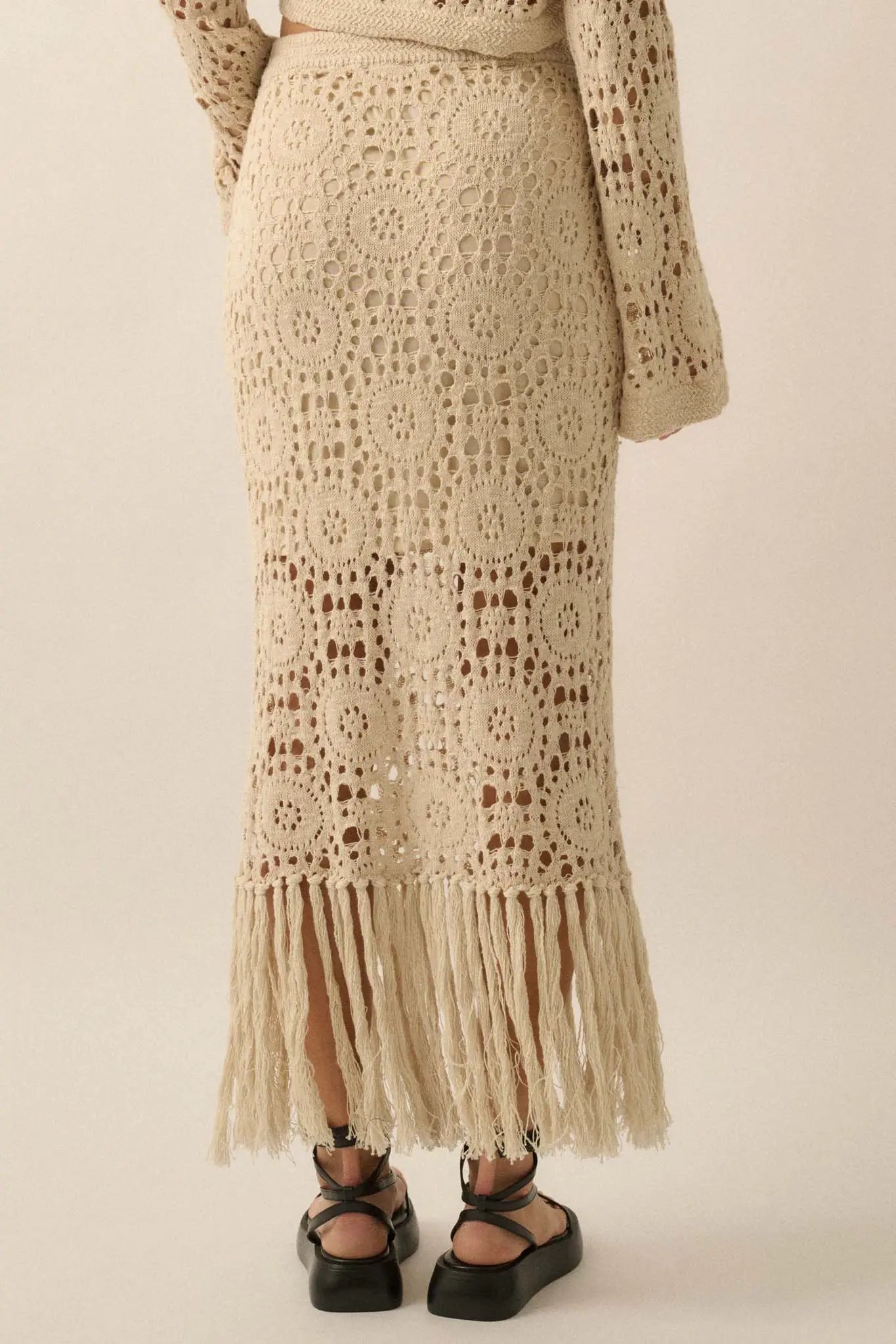 Vintage Soul Crochet Knit Fringe Maxi Skirt