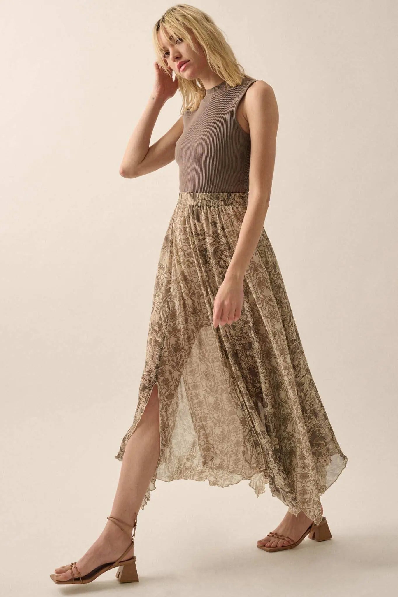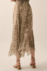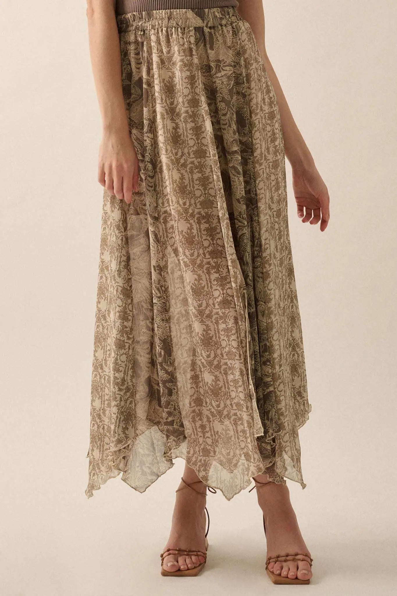 Vintage Winds Ornate-Print Handkerchief Maxi Skirt