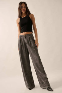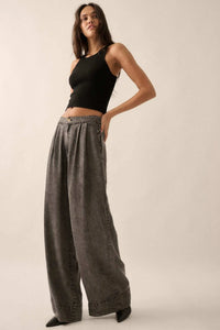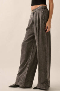 Walk It Off Acid-Wash Denim Pleated Wide-Leg Pants