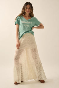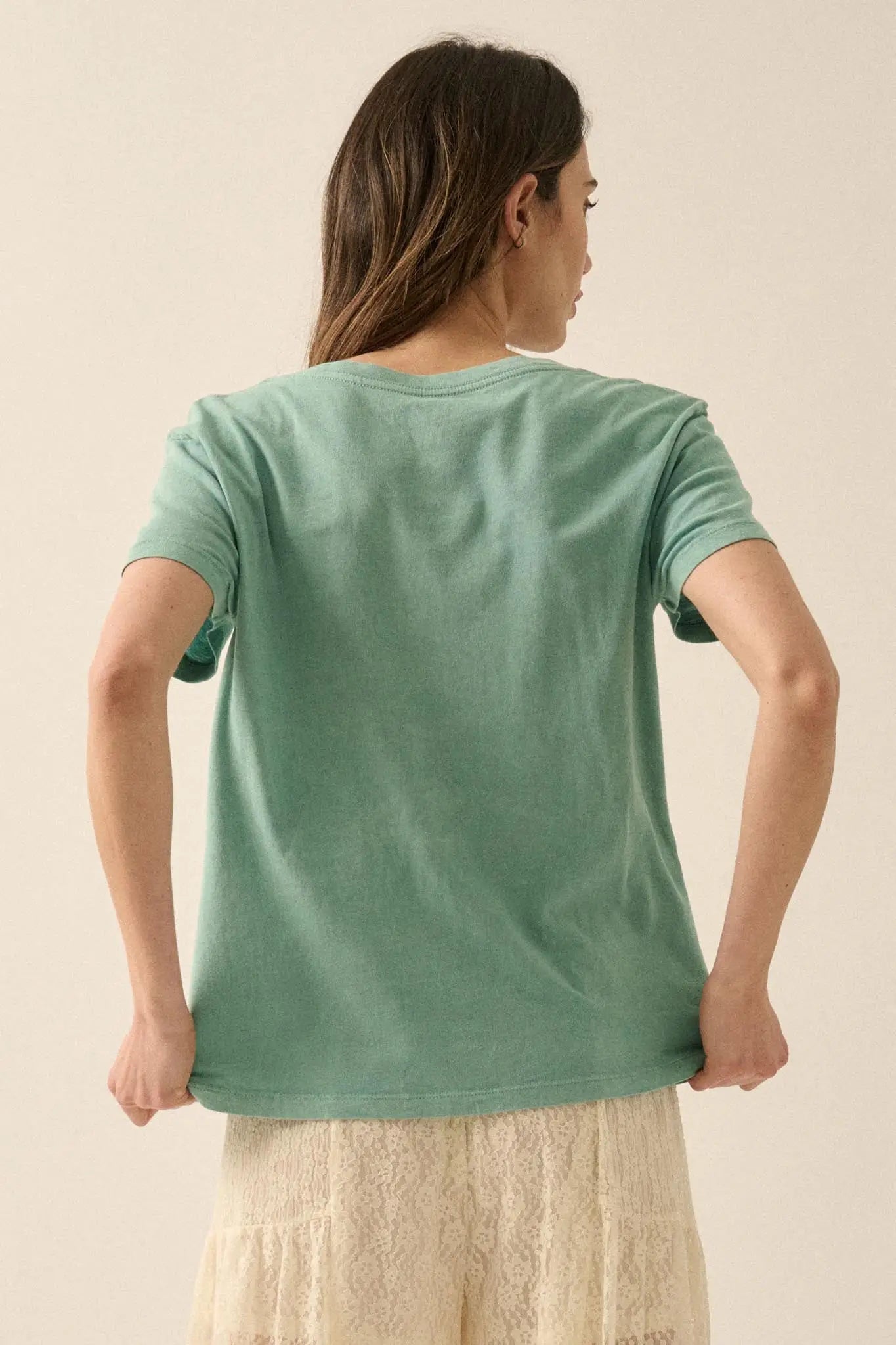 Weekend Chic Vintage-Wash V-Neck Graphic Tee