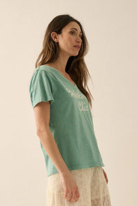 Weekend Chic Vintage-Wash V-Neck Graphic Tee - ShopPromesa