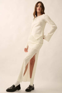 • Solid, textured knit maxi skirt.