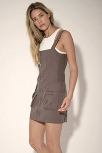 Work to Do Zip-Up Cargo Overall Mini Dress